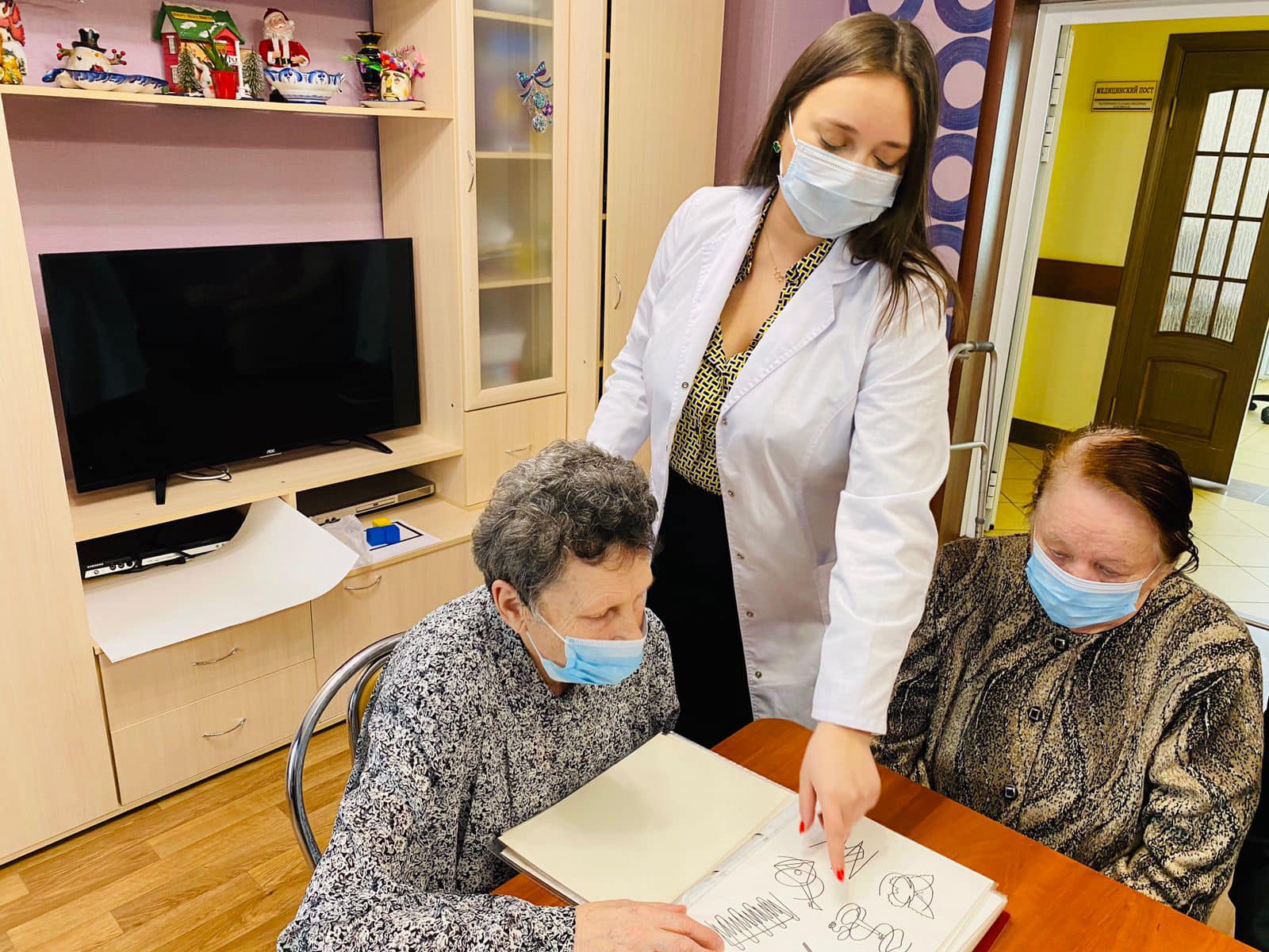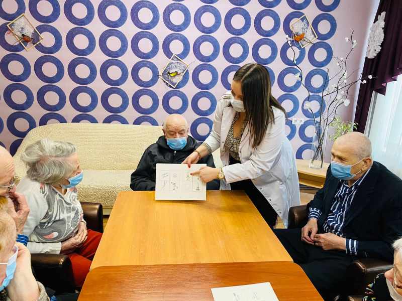 Проблема когнитивных расстройств и деменции сегодня невероятно актуальна, поэтому большое внимание в работе с нашими проживающими мы уделяем тренировкам их интеллектуально-мнестической сферы. Ежедневно мы проводим индивидуальные и групповые тренинги для профилактики когнитивных расстройств. Сегодня, 03.02.2022 г., в нашем доме под руководством заведующего социально-реабилитационным отделением Паначевой О.В. прошло очередное групповое занятие, направленное на тренировку памяти, внимания и мышления. «Я понимаю как важно поддерживать себя в тонусе и посещать такие занятия, для того, чтобы сберечь свой светлый ум и память», - говорит Украинцев В.А.