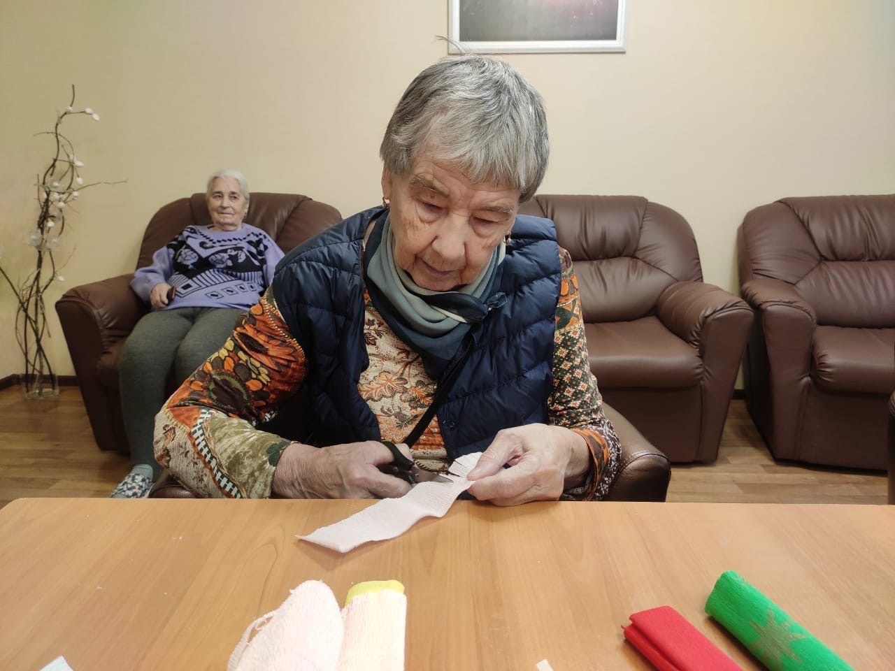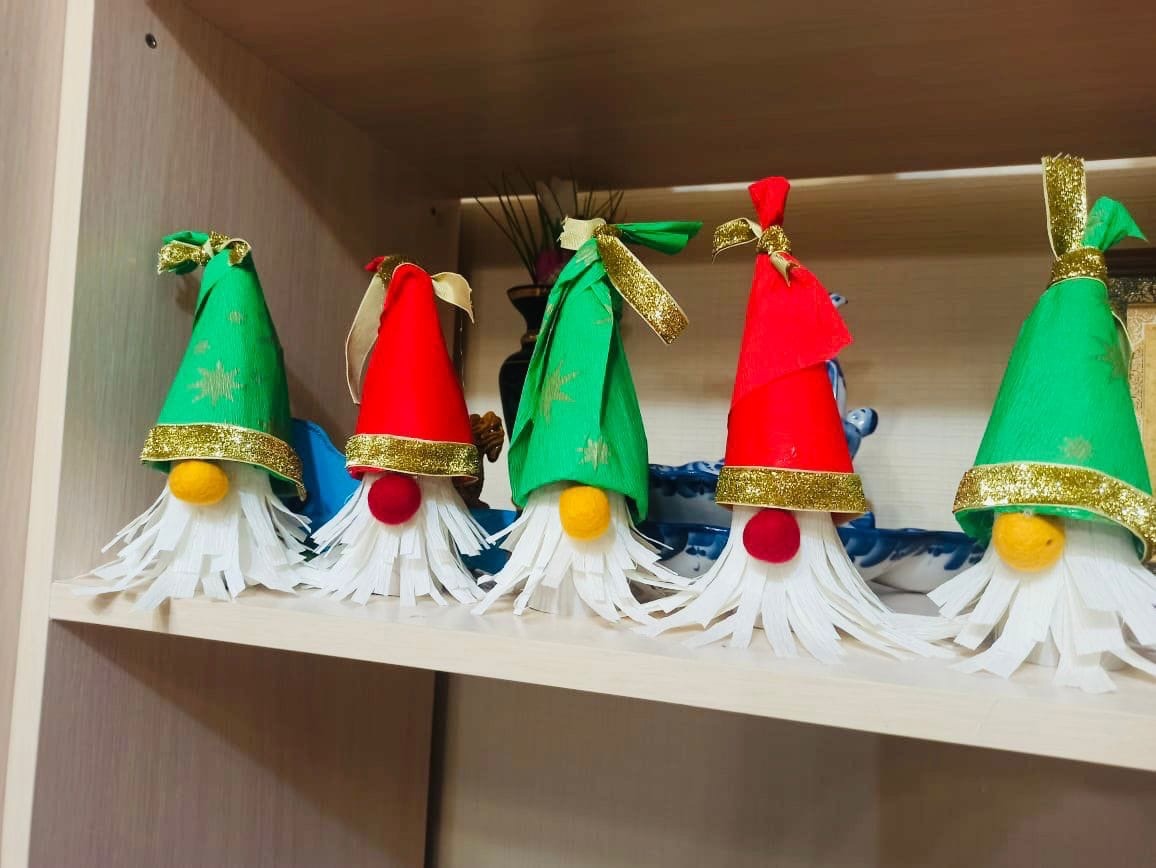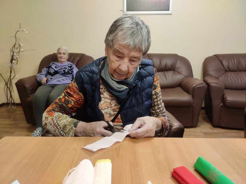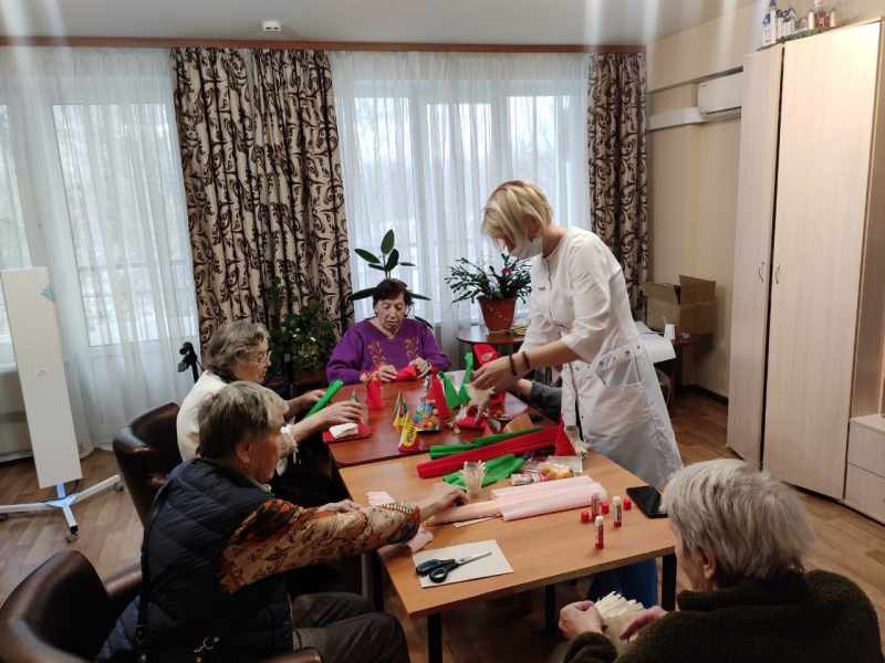 Сегодня мы расскажем вам как сделать необычное новогоднее украшение, которое легко можно смастерить самому или с удовольствием сделать со своими близкими. Вместе со специалистом по социальной реабилитации Клименко Еленой Николаевной наши проживающие делали новогодних гномиков. Для этого им понадобились: втулки, гофрированная бумага и цветной картон, лента любого цвета и шарики из фетра для носов. «Втулку обклеиваем гофрированной белой бумагой, которую необходимо заранее разрезать на полоски, - это будет борода нашего гномика. На получившуюся заготовку приклеиваем носы из фетра. Из цветного картона сворачиваем колпачки, которые украшаем лентами и надеваем на втулки. Полчаса и новогодняя игрушка, которая будет радовать вас и ваших близких, готова!», - рассказывает Елена Николаевна.
