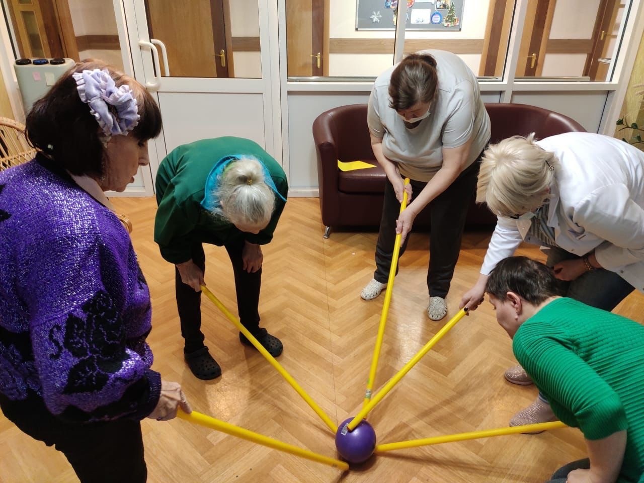 Движение - это жизнь. Для наших специалистов это не просто утверждение, а девиз по жизни. Каждую неделю медицинский психолог Загорская Екатерина Анатольевна и специалист по социальной реабилитации Клименко Елена Николаевна в рамках проекта "Золотой возраст" проводят занятия по нейробике и Зумбе голд. Вот что они рассказывают про свои занятия: «Нейробика (нейрогимнастика) – это комплекс телесно-ориентированных упражнений, направленный на развитие связей между структурами головного мозга. Всем известно о пользе утренней гимнастики, однако, не только тело нуждается в упражнениях, но и мозг. Этот комплекс упражнений направлен на усиление взаимодействия полушарий головного мозга. Развитие интеллектуальных способностей и творческого потенциала происходит при помощи выполнения определенных движений. Нейробика состоит из ряда несложных для выполнения упражнений, поэтому ее могут смело включать в свой режим дня пожилые люди. Тренировки удобно проводить в любое время без привязки к месту. Зумба голд - это танцевальные уроки, которые как нельзя лучше подходят людям пожилого возраста, а также тем, кому необходимо соблюдение осторожности при физических нагрузках. И неважно умеете вы танцевать или нет, в какой вы физической форме, главное - это ваше желание. Программа настолько гибкая, что подойдёт всем без исключения, с любым уровнем подготовки. Ну и, конечно же, Зумба Голд это не только танцы - это невероятный прилив энергии и положительных эмоций».