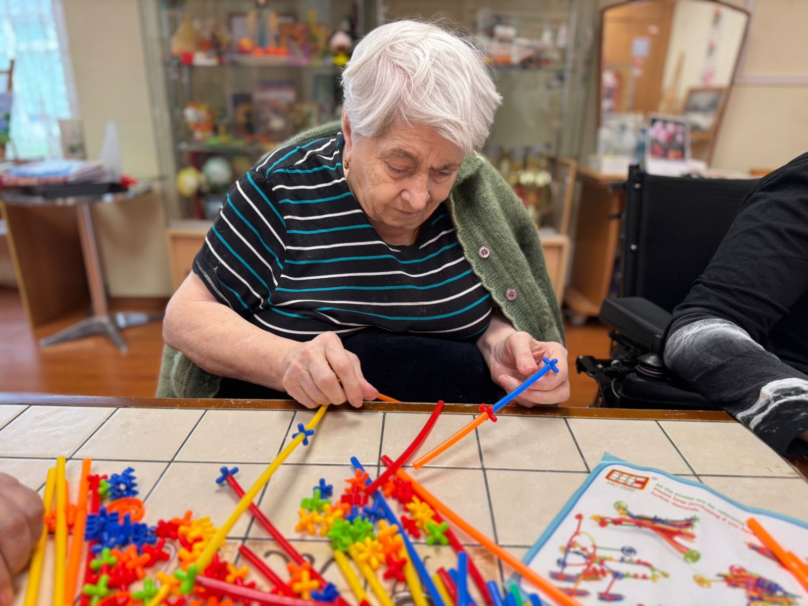 Специалист по социальной реабилитации Грунина Ольга Викторовна объяснила основы работы с конструктором, продемонстрировала несколько простых моделей. Дальше дело ограничивалось только фантазией и воображением участников. Кто-то строил геометрические фигуры, кто-то – замысловатые башни, а кто-то – абстрактные скульптуры, выражая через них свои мысли и чувства. Процесс конструирования требует концентрации внимания, логического мышления и пространственного воображения. А это, в свою очередь, помогает поддерживать ясность ума и замедляет процессы старения. Помимо когнитивных преимуществ, занятие с конструктором Straws приносит и социальную пользу. Совместная деятельность способствует обмену опытом и укреплению социальных связей, а также это интересное и увлекательное времяпровождение.