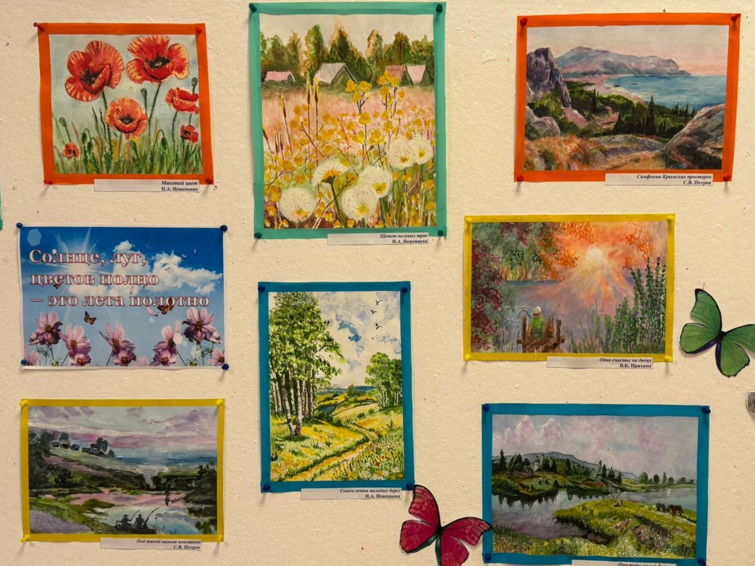В экспозиции представлены работы, выполненные в нежной технике акварели. Легкие, полупрозрачные мазки передают всю красоту летней природы: пышное цветение садов, золотые поля, умиротворяющую гладь озер. В каждом рисунке чувствуется любовь к жизни, внимание к деталям и тонкое восприятие окружающего мира. В акварелях оживают воспоминания о счастливом детстве, о прогулках по лесу, о теплых вечерах в кругу семьи. Эти рисунки – не просто изображения, это истории, рассказанные языком красок и кисти. Картины не оставили равнодушным никого, кто останавливался и любовался ими.