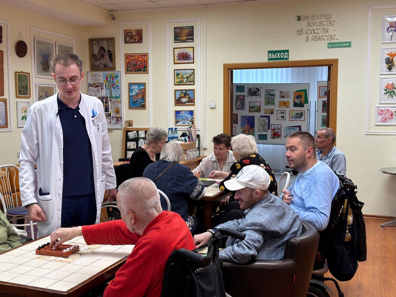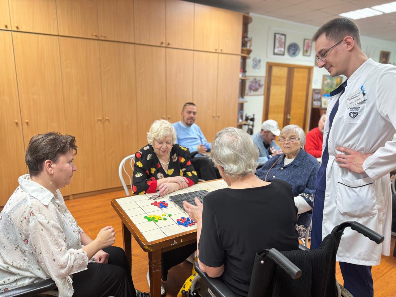 Сегодня в нашем Геронтологическом центре состоялось специализированное занятие, посвященное когнитивному развитию посредством интеллектуальных настольных игр. Наш гериатр Турыгин Сергей Витальевич представил участникам широкий спектр настольных игр, способствующих поддержанию и улучшению когнитивных функций. В ходе занятия были рассмотрены такие игры, как Пентаго - стратегическая игра, развивающая пространственное мышление и внимание к деталям; китайские шашки - известная своей простотой правил и глубиной стратегических возможностей, полезная для развития логического мышления и планирования; а также орбитальные шахматы - сложная игра, требующая абстрактного мышления и умения просчитывать ходы на несколько шагов вперед. Сергей Витальевич подробно объяснил правила каждой игры, акцентируя внимание на том, как они могут способствовать стимуляции различных отделов мозга, улучшению памяти и концентрации внимания. Особое внимание было уделено важности регулярных тренировок и поддержанию активного образа жизни для сохранения когнитивного здоровья в пожилом возрасте. Участники проявили большой интерес к представленным играм и выразили желание продолжить занятия в будущем.