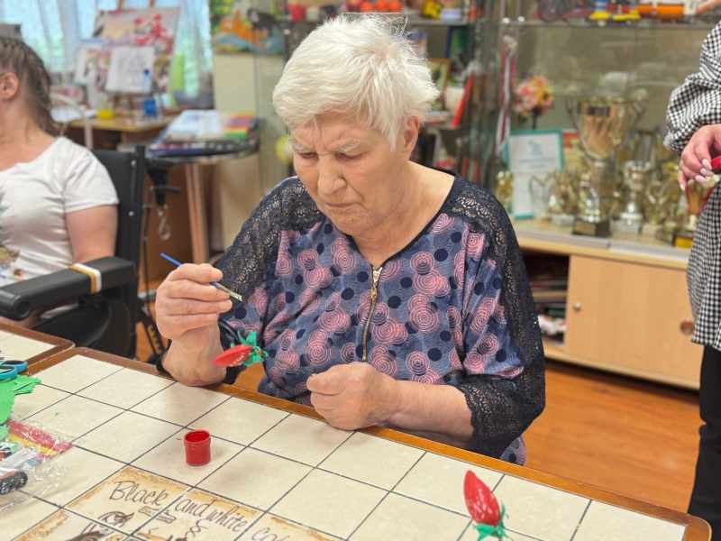 Собираем урожай ягод! Июль – время созревания земляники и клубники. На сегодняшнем занятии в нашем Геронтологическом центре прошел мастер-класс под руководством специалиста по социальной реабилитации Груниной Ольги Викторовны по созданию ягод из подручных материалов. Занятие было направлено на развитие мелкой моторики и творческого мышления у пожилых людей. Участникам было предложено создать объемные ягоды из подручных материалов, используя цветную бумагу, клей, краски и другие доступные материалы. Готовые ягоды стали ярким украшением комнат. Они не только создают атмосферу лета и радости, но и служат напоминанием о творческом потенциале, который сохраняется в любом возрасте.
