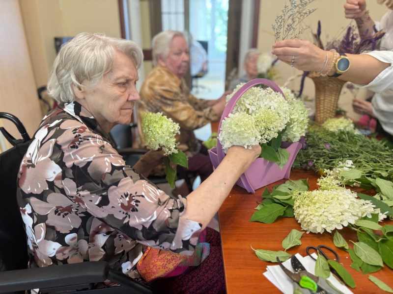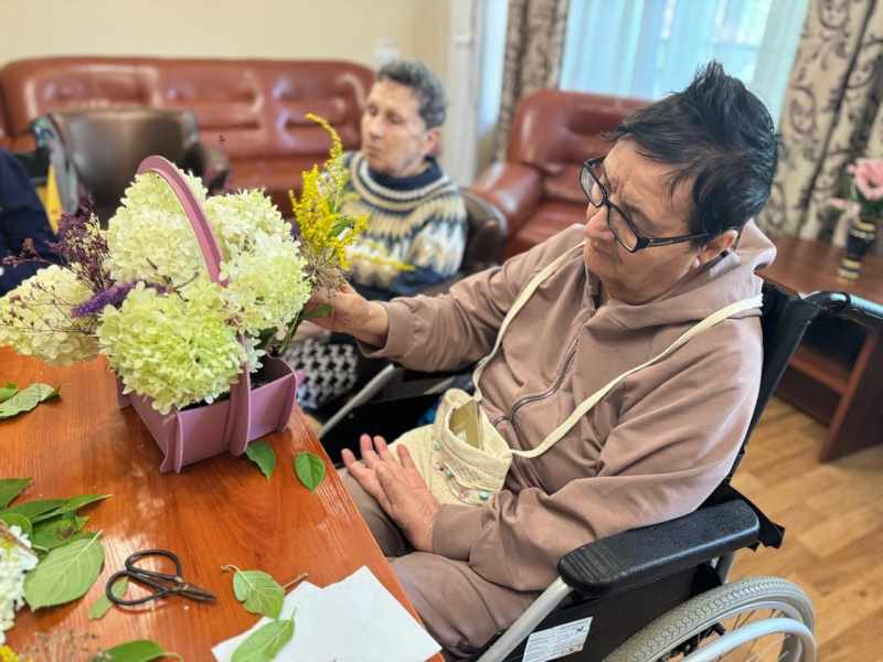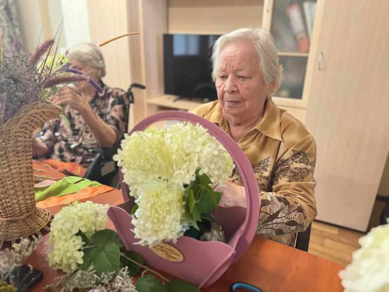 Сегодняшний день в нашем Геронтологическом центре расцвёл всеми красками лета! Специалисты социально-реабилитационного отделения Бабальянц Юлия Вячеславовна и Федотова Ксения Владимировна провели чудесное занятие по флористике – творили прекрасное из живых цветов. Сначала жители дружно создали один большой, пышный букет в корзине, который теперь украшает один из холлов нашего Центра. А потом каждый участник смастерил свой маленький, персональный букетик, чтобы унести с собой частичку летнего тепла и красоты домой. Работа с цветами – это не только эстетическое удовольствие, но и огромная польза для здоровья, особенно в пожилом возрасте. Дело в том, что растения выделяют фитонциды – природные антибиотики, которые очищают воздух и благотворно влияют на организм. Они улучшают настроение, снижают уровень стресса и даже укрепляют иммунитет. А ещё, когда работаешь с цветами, тренируется мелкая моторика рук, что очень важно для поддержания когнитивных функций. Наши жители просто сияли от счастья, собирая свои букетики. Каждый цветок был выбран с особым трепетом, каждый лепесток – аккуратно уложен. День прошёл очень душевно и красиво. Обязательно повторим! Ведь красота спасёт мир, а цветы – это маленькое чудо, доступное каждому.