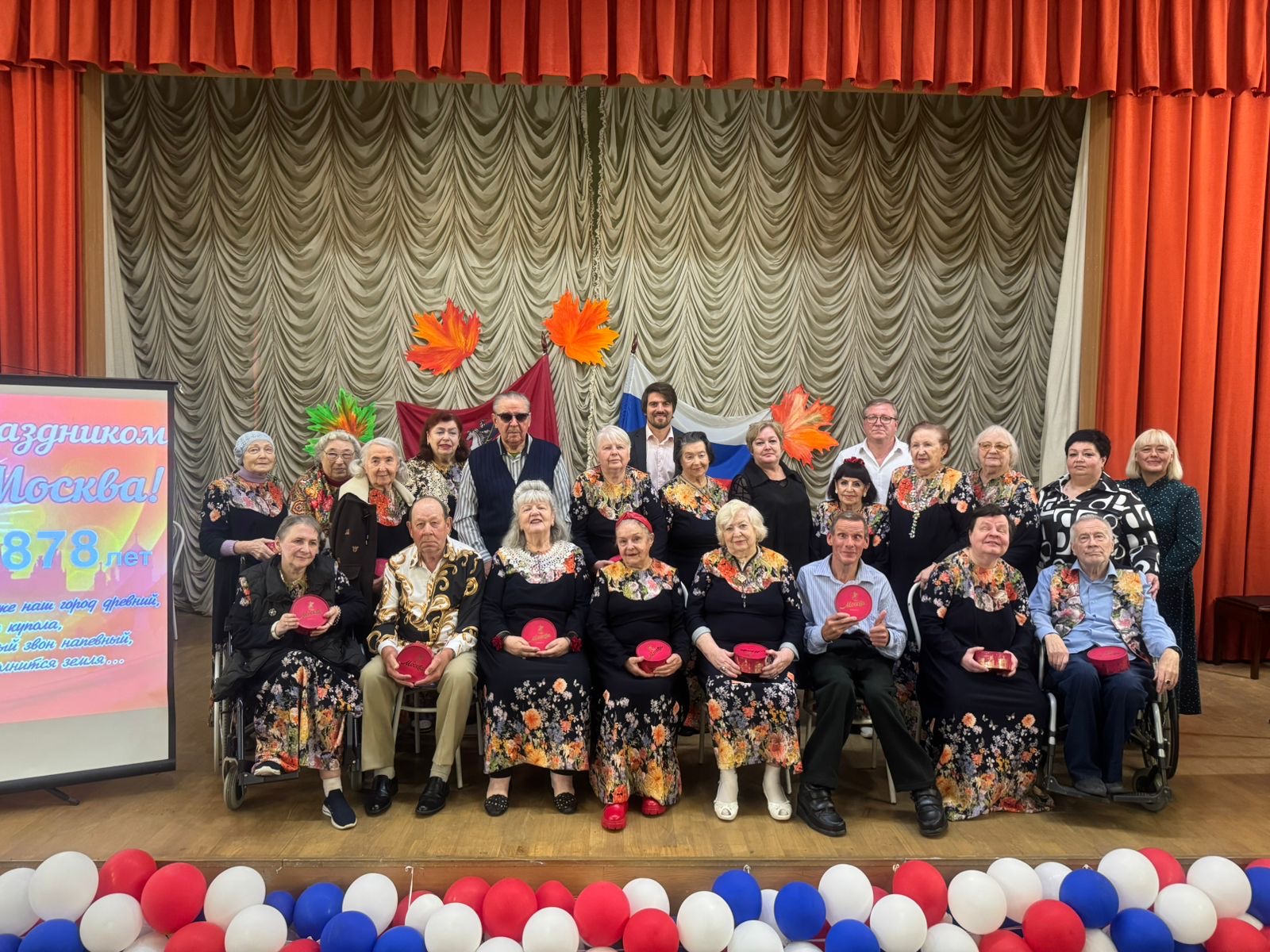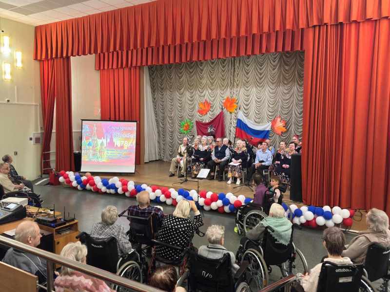 На грядущих выходных Москва отмечает свое 878-летие. День города — это не просто дата в календаре. Это один из самых любимых праздников жителей столицы. Для москвичей он стал символом единства, уважения к истории и любви к столице. Сегодня, в преддверии официальных торжеств, в нашем Филиале прошел праздничный концерт «С днем рождения, Москва!» хора проживающих «Сердце, тебе не хочется покоя!» и коллектива художественной самодеятельности учреждения, которые исполнили известные композиции о Москве.
