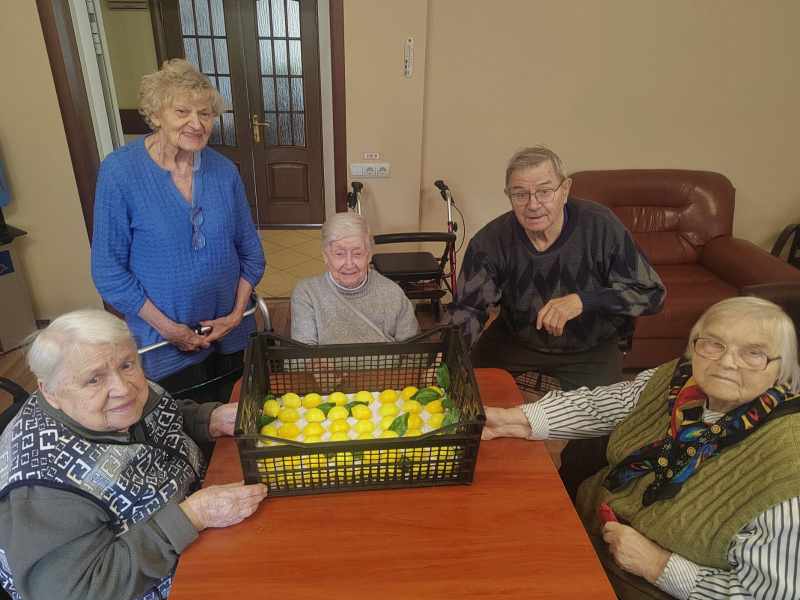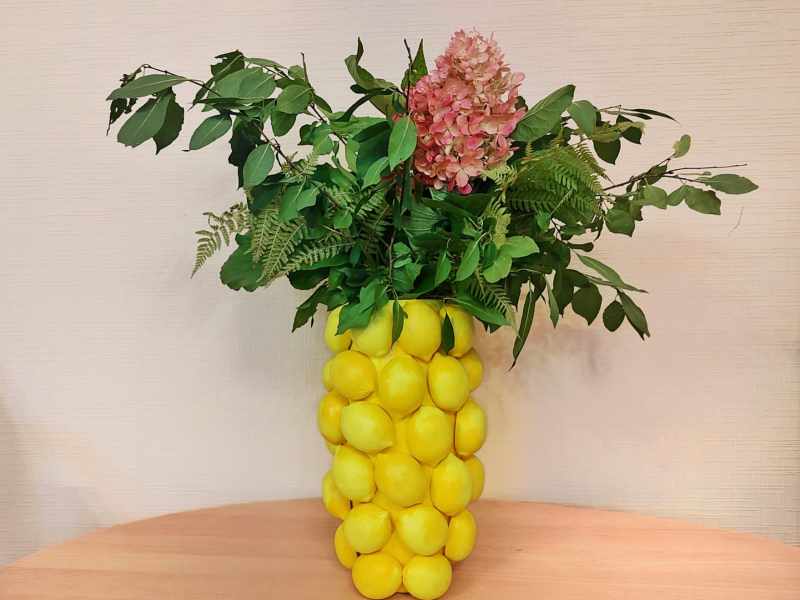 На протяжении нескольких занятий наши жители под руководством медицинского психолога Федотовой Ксении Владимировны создавали стильную и модную вазу из лимонов. Этот трендовый элемент декора не только эффектно смотрится, но и прост в исполнении. Для начала мы залили гипсом формочки-лимончики, дали им высохнуть и покрыли жёлтой акриловой краской. После чего приклеили их на стеклянную вазу. И вот он - результат!