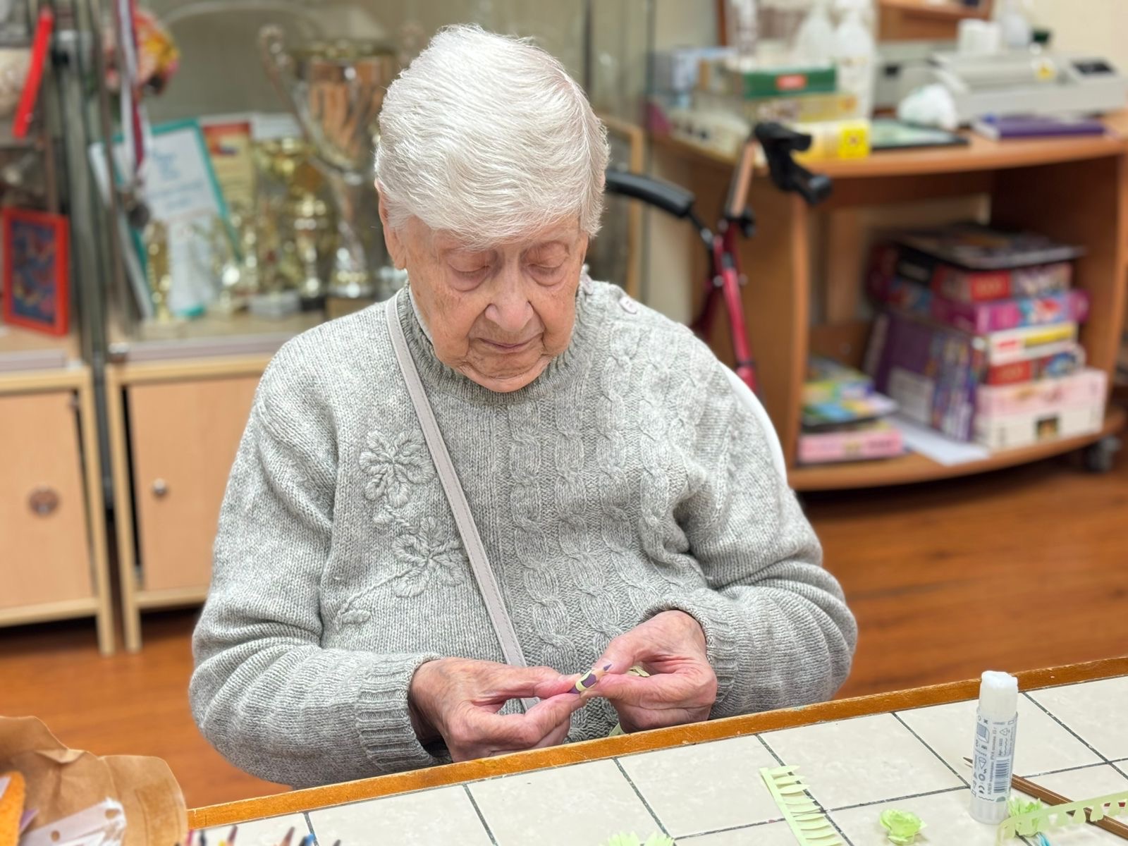 Квиллинг – это очень интересно! Только представьте, берешь обычную бумажную полоску и… превращаешь ее в настоящее произведение искусства! Жители нашего Геронтологического центра очень любят это занятие. Это как медитация, только с бумагой и клеем!