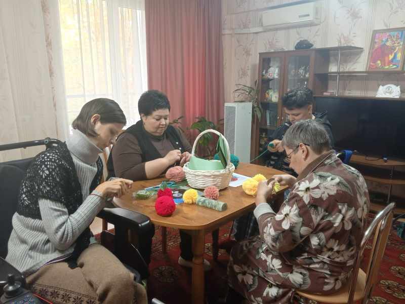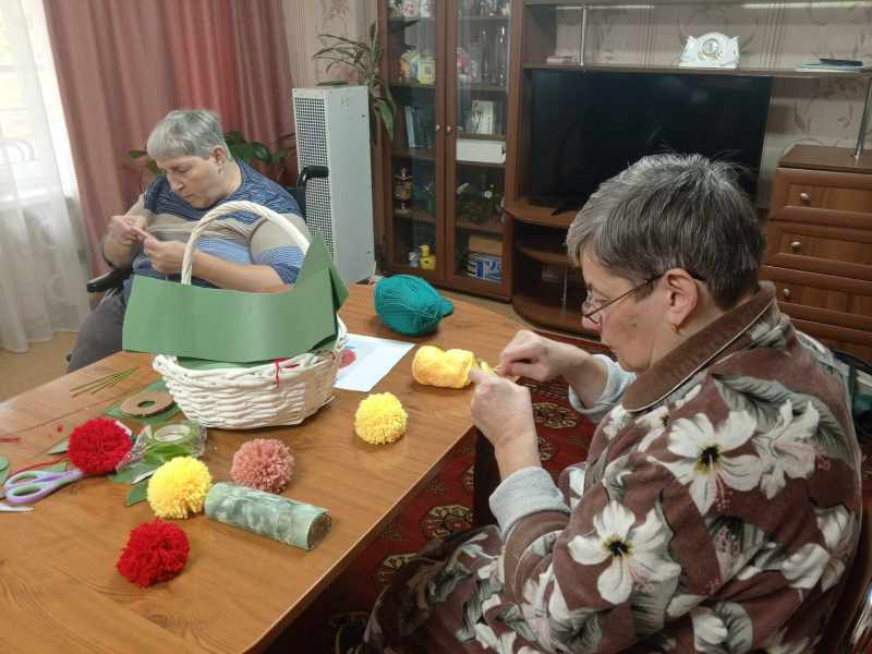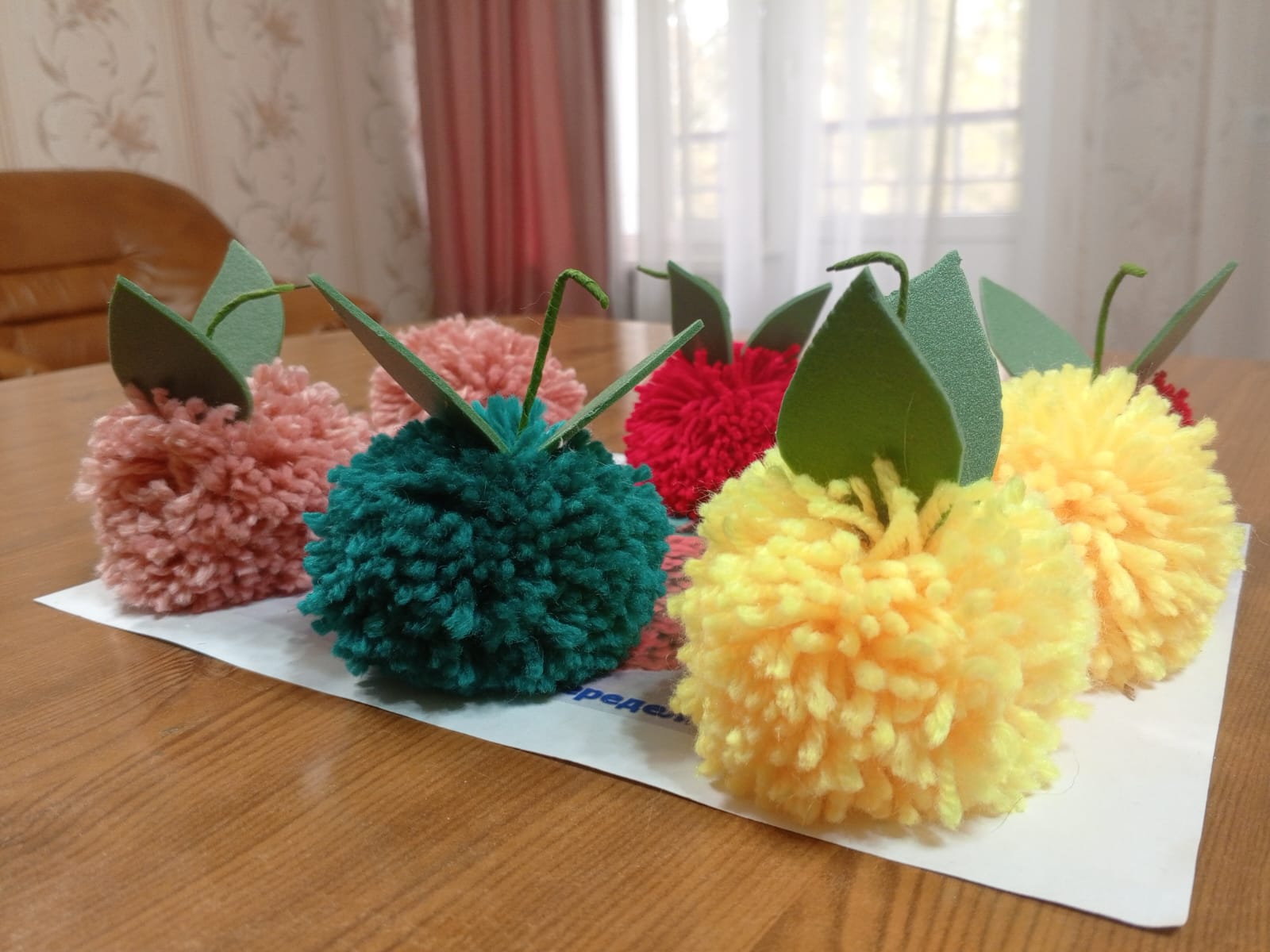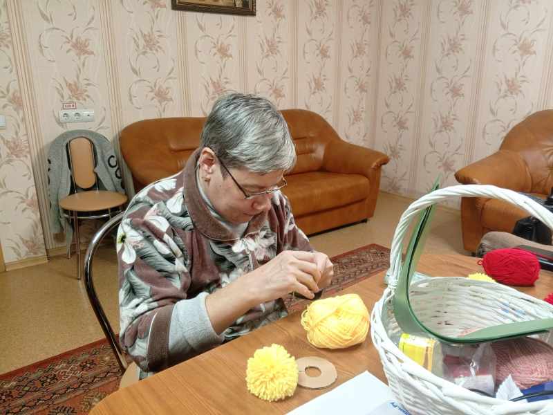 Тренировка мелкой моторики — важная составляющая в жизни наших проживающих . Мелкая моторика, в частности, влияет на внимание, память, речь. Одним из простых и увлекательных методов тренировки моторных навыков являются занятия с пряжей. Сегодня специалист по социальной реабилитации Грунина Ольга Викторовна провела занятие по изготовлению помпонов из пряжи. Эти мягкие и яркие шарики предоставляют множество возможностей для игр и упражнений, которые помогают участникам занятия развивать координацию, силу пальцев и творчество. И из них мы сделали замечательные фрукты, а ещё отлично провели время в кругу друзей.