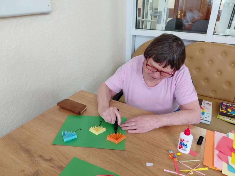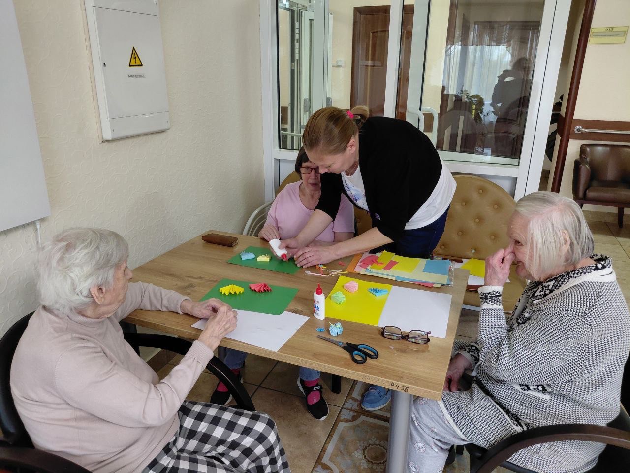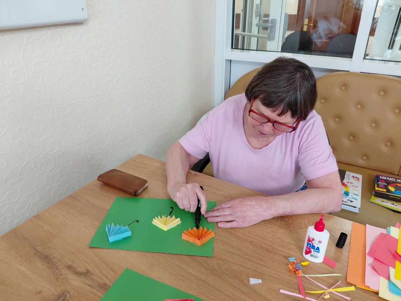 В нашем Геронтологическом центре никогда не бывает скучно! Сегодня под руководством медицинского психолога Ирины Александровны Калиниченко прошло творческое занятие — мастер-класс по объемной аппликации «Осеннее настроение».