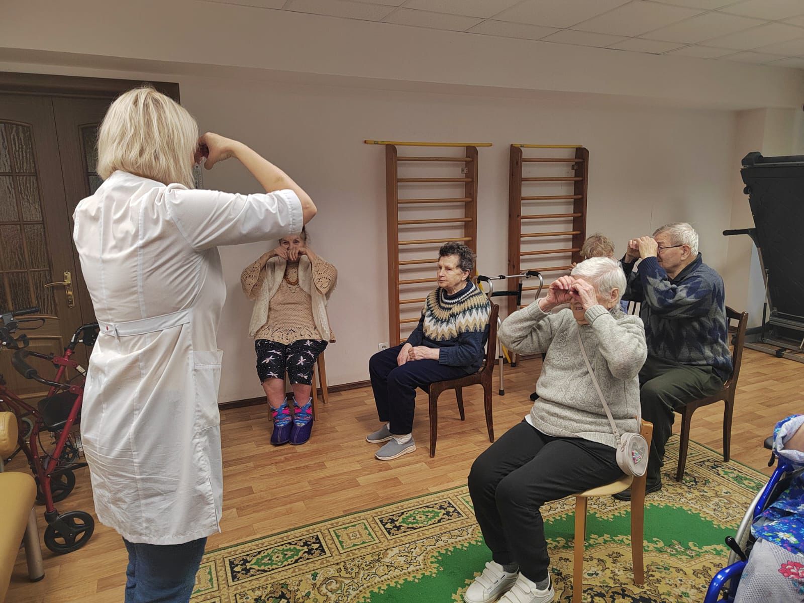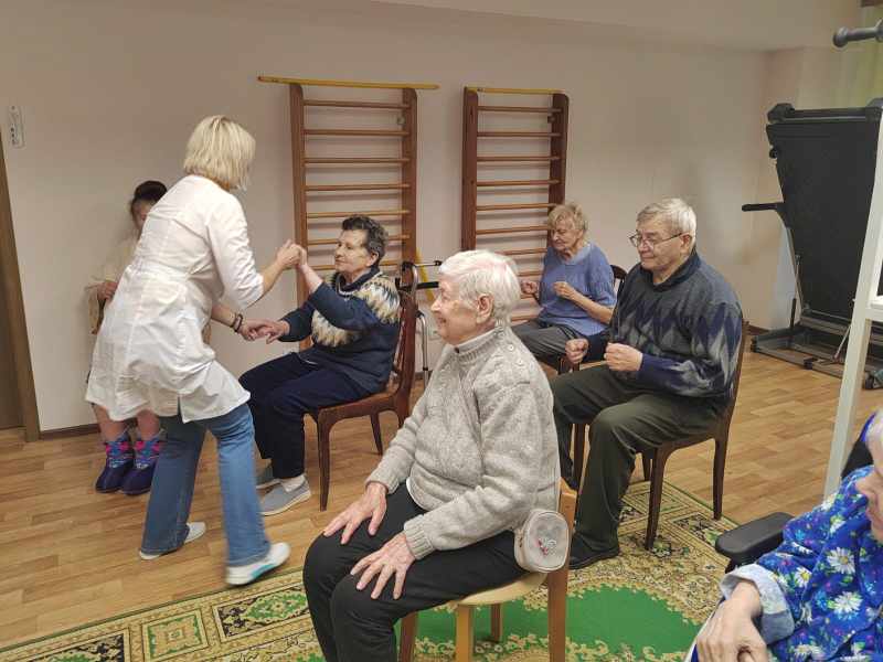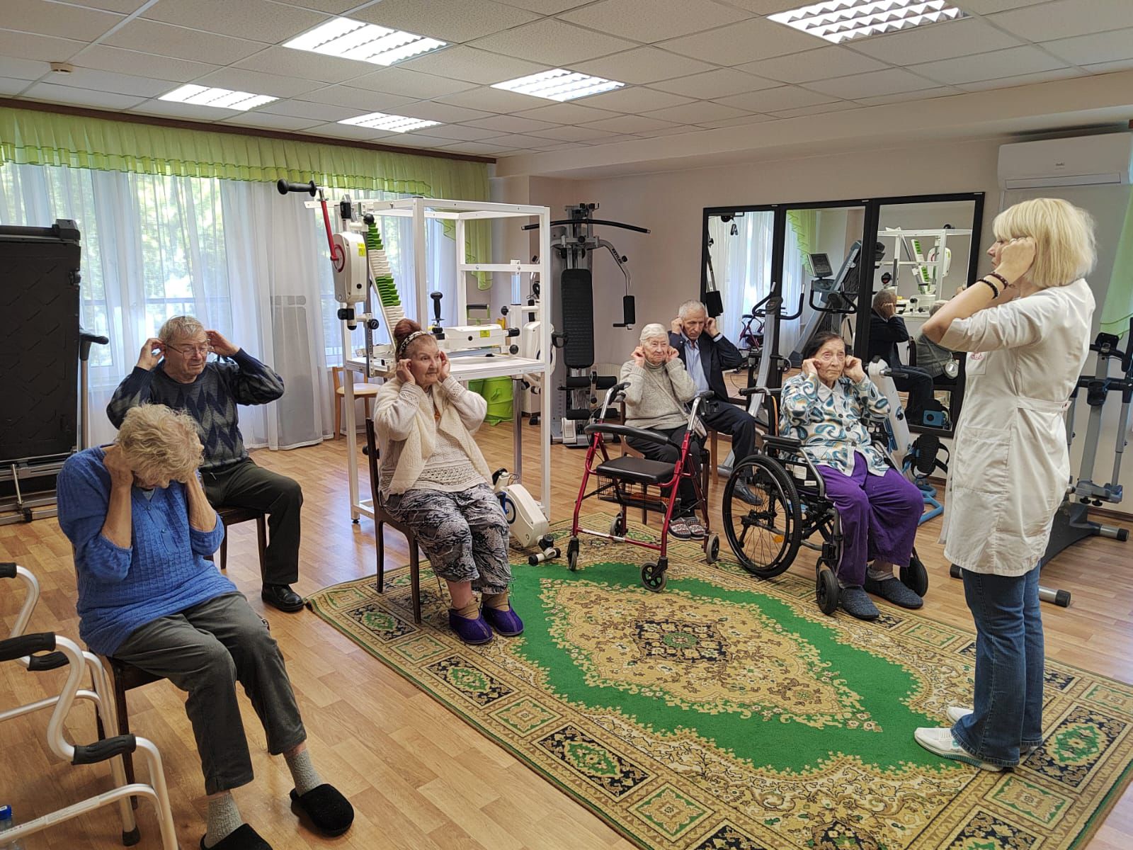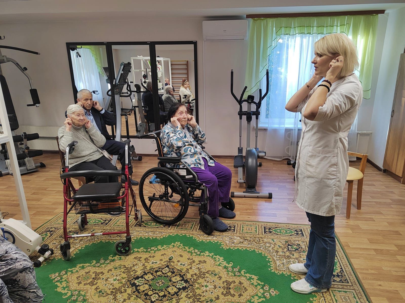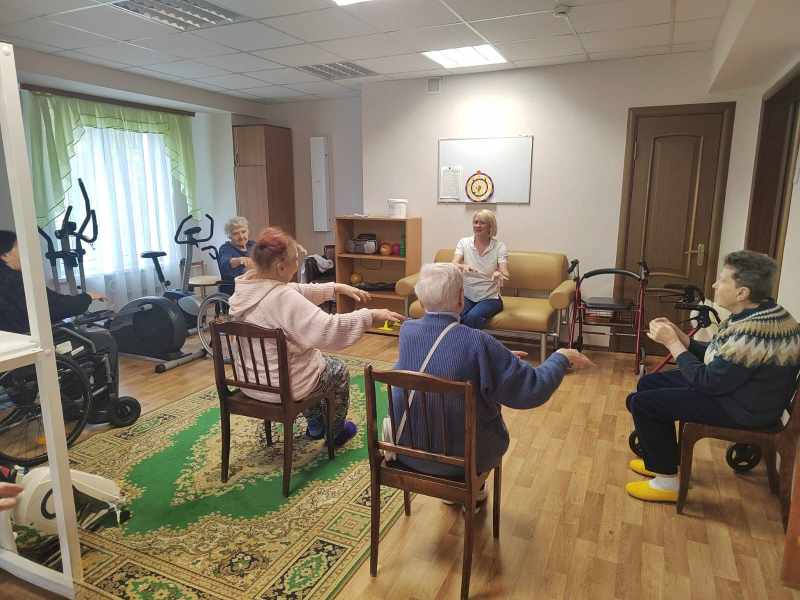В нашем Геронтологическом центре кипит жизнь! Специалист по социальной реабилитации Елена Николаевна Клименко заряжает наших проживающих энергией и хорошим настроением на занятиях по Зумбе-Голд.