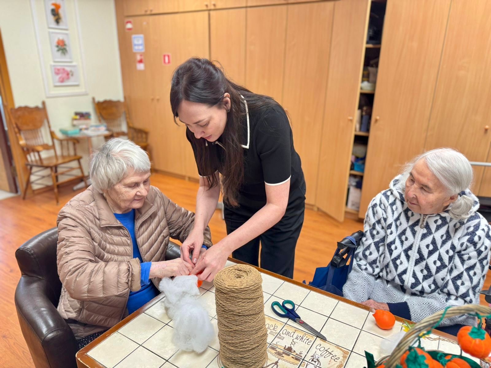 Под руководством специалиста по социальной реабилитации Ирины Николаевны Журавлевой участники освоили технику создания декоративных тыкв из воздушных шаров и цветной бумаги. В процессе царила потрясающая атмосфера: все помогали друг другу, делились идеями, шутили и смеялись. В глазах горел тот самый творческий огонек, который так ценен в любом возрасте.