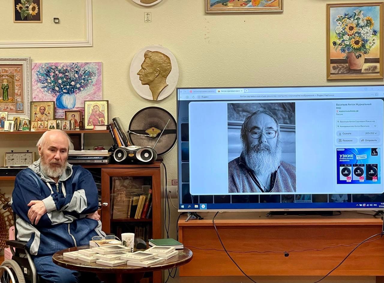 В нашем Геронтологическом центре прошла очередная встреча литературного кружка «Поэтические встречи», и на этот раз она стала по-настоящему особенной. Гостем и главным героем вечера стал удивительный человек, наш житель - Антон Сергеевич Васильев. Антон Сергеевич - личность многогранная и талантливая - известный российский режиссер, сценарист, поэт, эколог и публицист. В теплой, дружеской обстановке Антон Сергеевич поделился с нами яркими историями из своей насыщенной творческой и личной жизни, рассказал о своей работе в кино, вспоминая такие любимые фильмы, как «Блажной», «Красиво жить не запретишь», «По траве босиком» и глубокую философскую ленту «Поднимаю глаза свои к небу» 🎞.