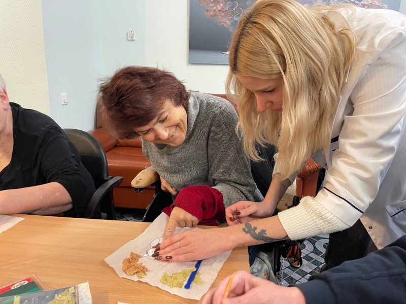 «Работа с мелкими деталями - отличная тренировка для пальцев, концентрация внимания, стимуляция когнитивных функций и, конечно, источник прекрасного настроения!», - рассказали о своем занятии специалисты.