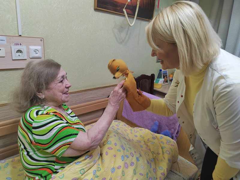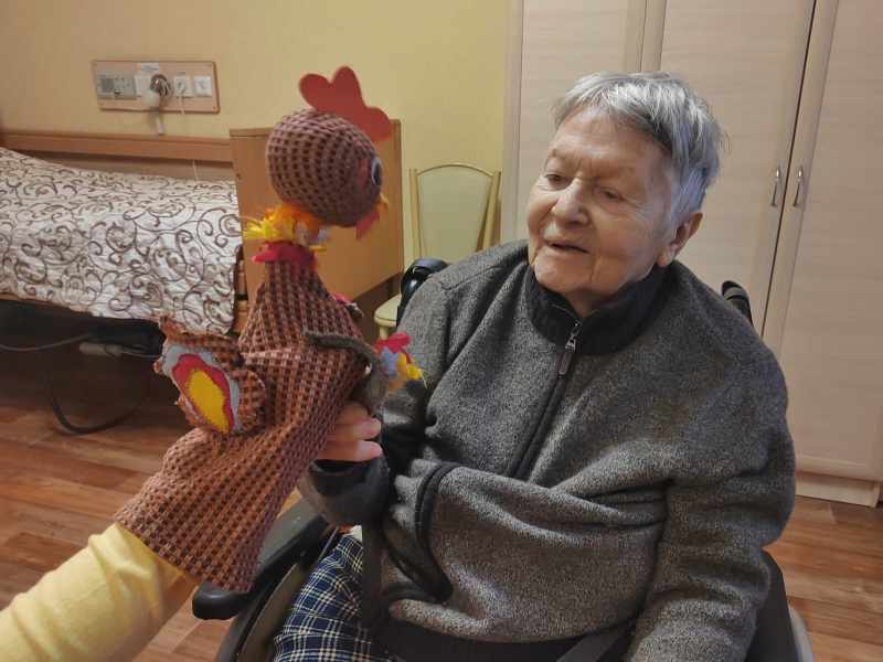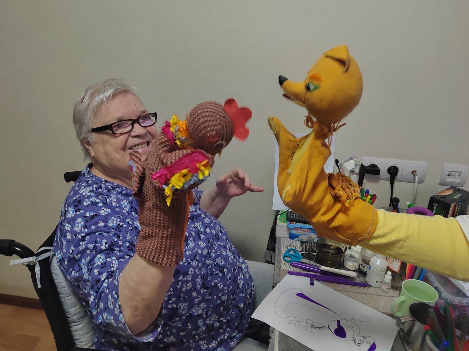 В нашем Геронтологическом центре специалисты ежедневно проводят как групповые, так и индивидуальные занятия. Одним из популярных видов занятий среди жителей является сказкотерапия с элементами когнитивного тренинга. Сегодня специалист по социальной реабилитации Клименко Елена Николаевна провела индивидуальные тренинги, в которых использовала перчаточные куклы. Такой подход позволяет создать максимально комфортную и безопасную атмосферу для каждого участника. Каждая такая встреча — это не просто занятие, а шаг к поддержанию ясности ума и душевного комфорта. Ведь наша главная задача — это комплексная забота: сохранять познавательную активность и ежедневно окружать каждого вниманием и теплом!