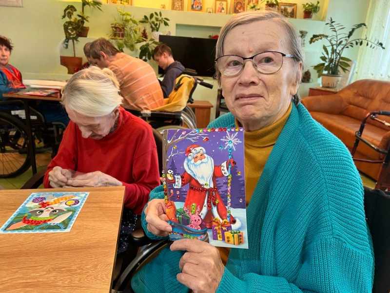 После инсульта мозгу нужно заново учиться управлять телом. Особенно страдает мелкая моторика: движения рук становятся неточными, и даже простые действия даются с трудом. Но реабилитация может быть не только полезной, но и увлекательной! В нашем Геронтологическом центре прошло предновогоднее занятие по алмазной аппликации. Под чутким руководством специалистов — Ирины Николаевны Ивашкевич и Ирины Александровны Калиниченко — наши жители погрузились в творческий процесс. Крошечные стразик за стразиком, развивая хватку и координацию, они создавали новогодние шедевры. Почему это больше, чем просто хобби?