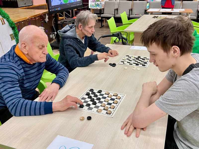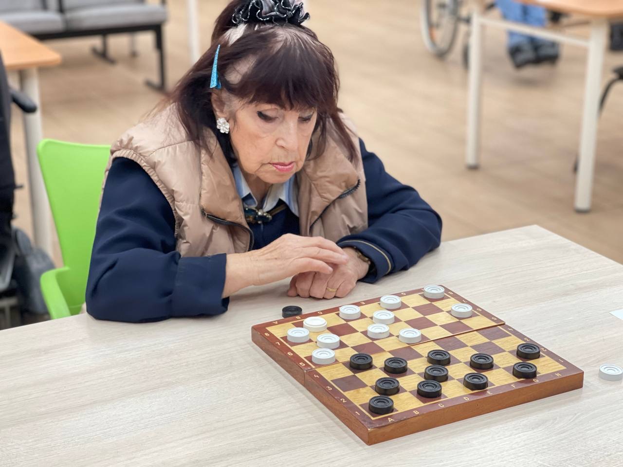 Сегодня жители Социального дома «Обручевский» и его филиалов - «Геронтологический центр «Тропарево», «Зюзино» и «Беляево» - встретились в дружеском турнире по шашкам. Это не просто игра! Турнир — часть нашей большой миссии по популяризации здорового образа жизни, реабилитации через спорт и развитие интеллектуальных способностей. А еще это прекрасный повод укрепить связи между нашими филиалами и дать бойцам проявить свой стратегический талант. Шашки — древняя и мудрая игра, где под кажущейся простотой скрываются глубинные комбинации и блестящие тактические решения. Это не только спорт, но и настоящее искусство мысли! И вот они — герои, принесшие победу, Геронтологическому центру «Тропарево»!