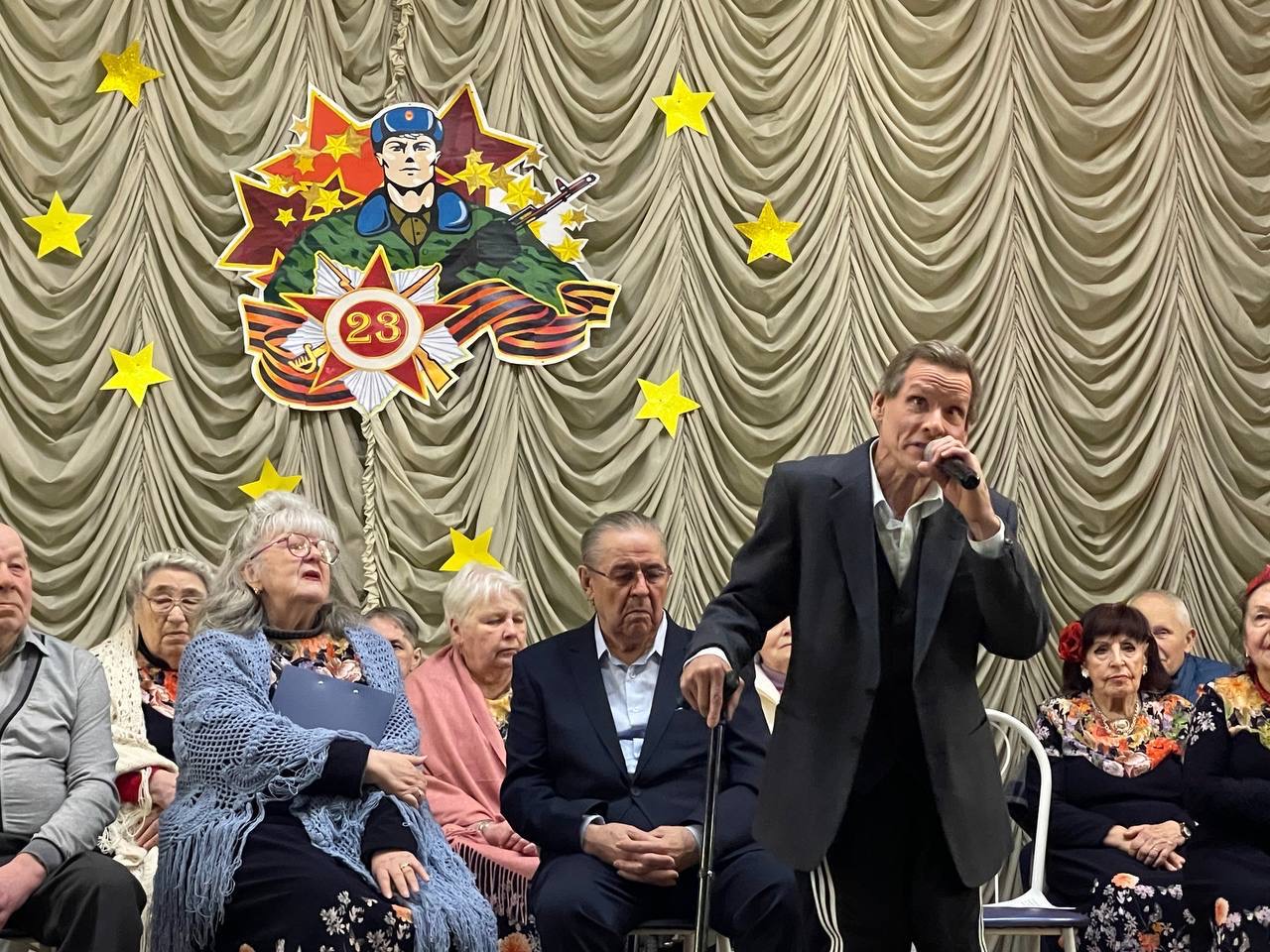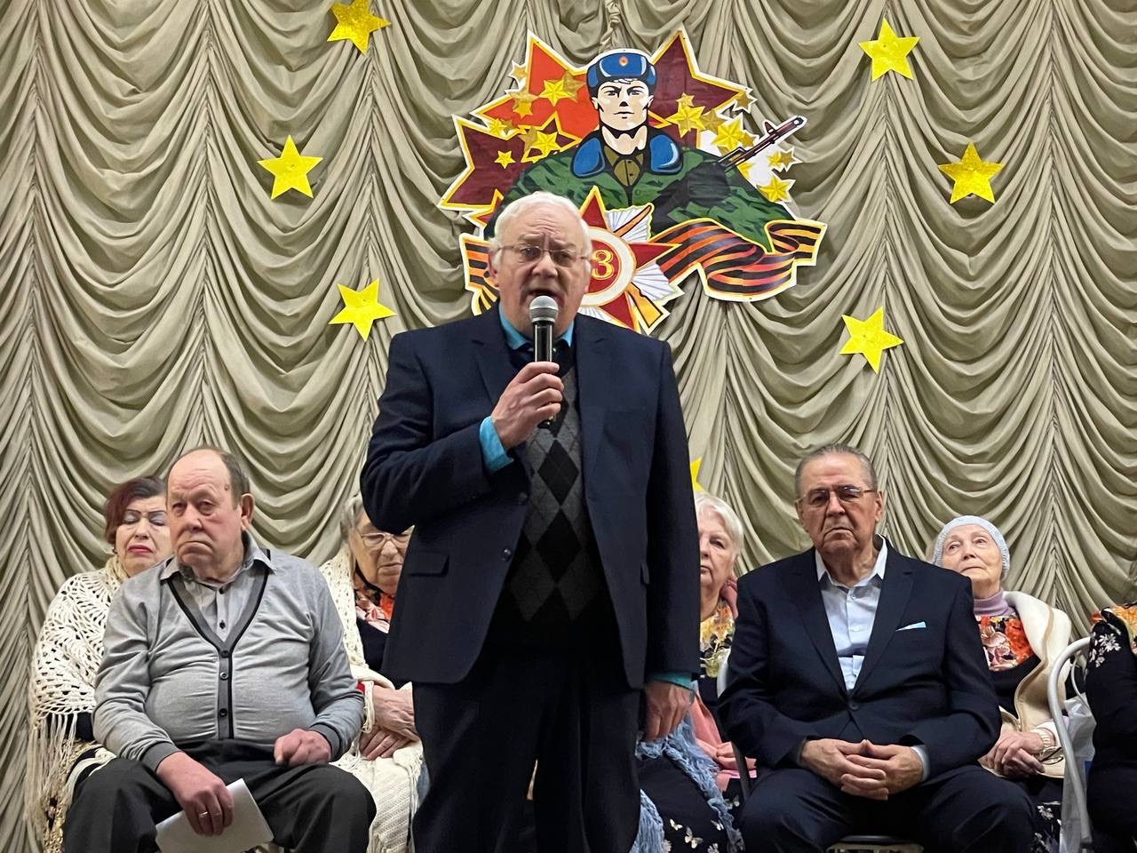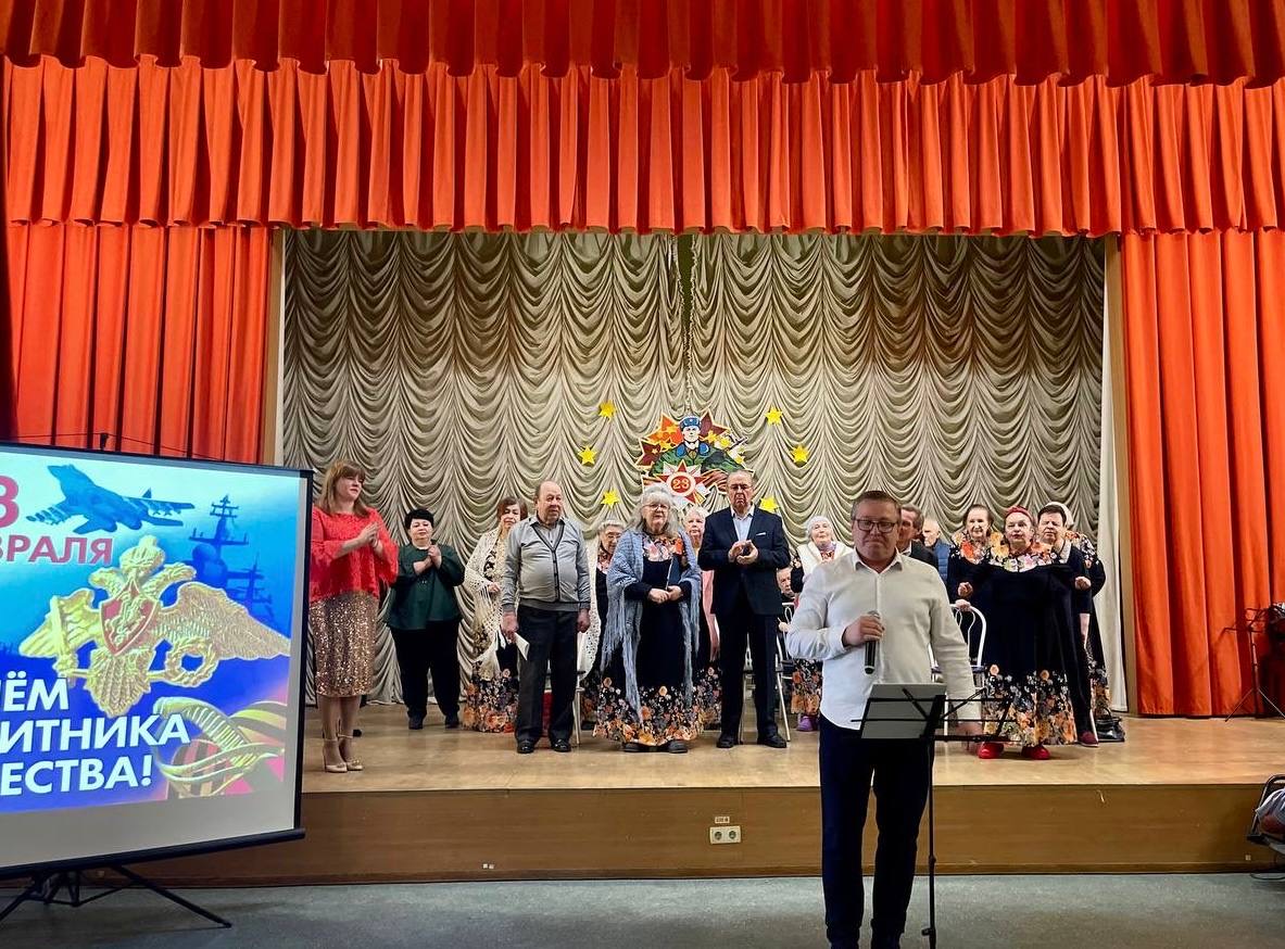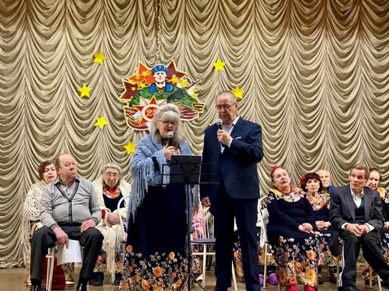 На сцене выступали те, кто умеет тронуть сердце до слез — наш любимый хор проживающих «Сердце, тебе не хочется покоя!» и коллектив художественной самодеятельности. В программе звучали песни, ставшие родными для нескольких поколений: задорный марш «Идет солдат по городу», пронзительные «Красные маки» и трогательное поздравление в песне «Мужчины».
