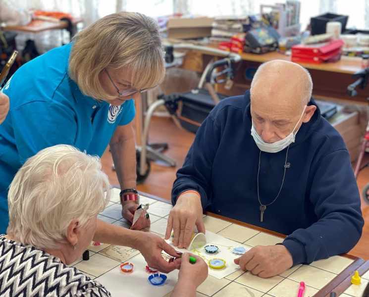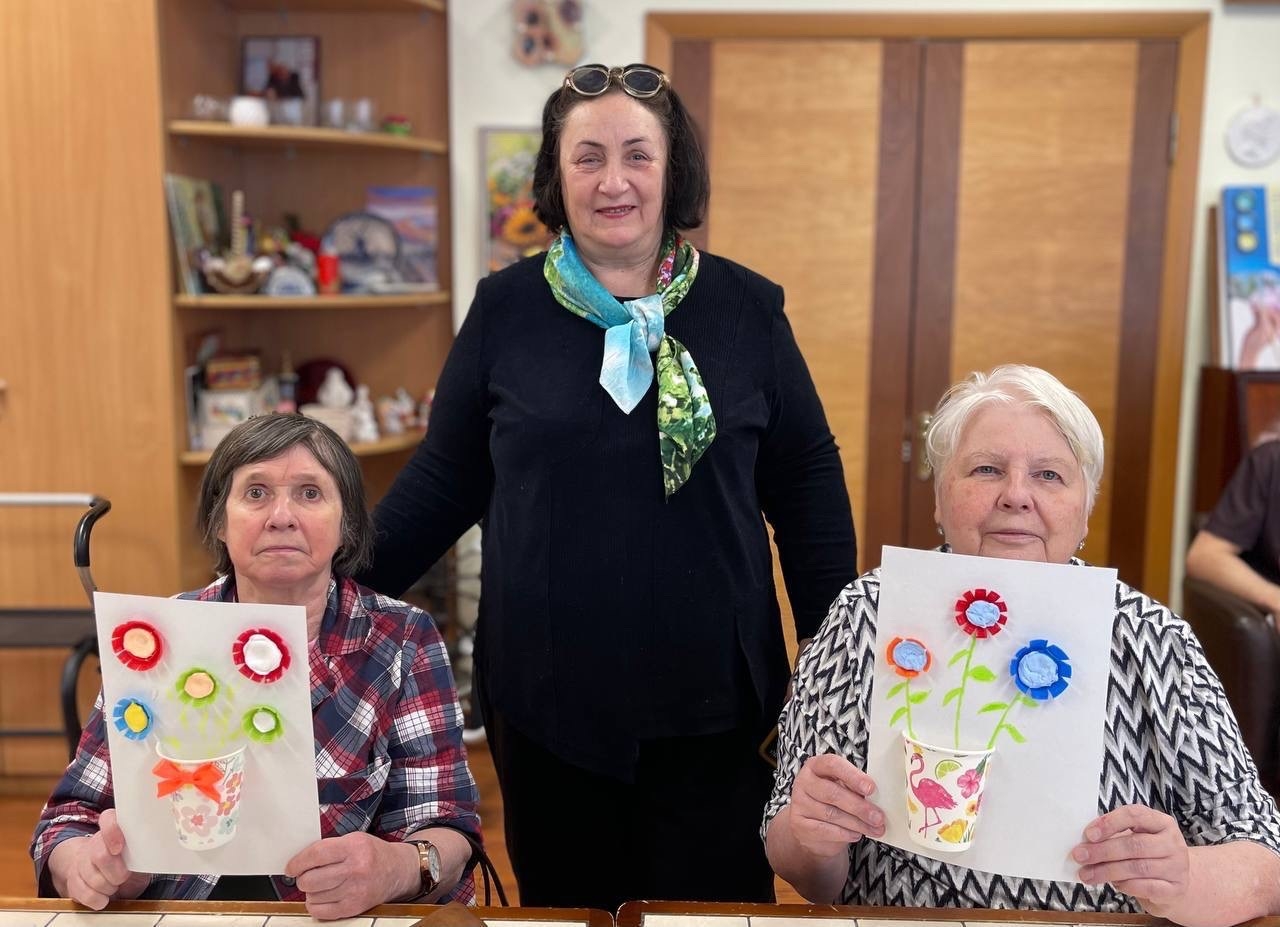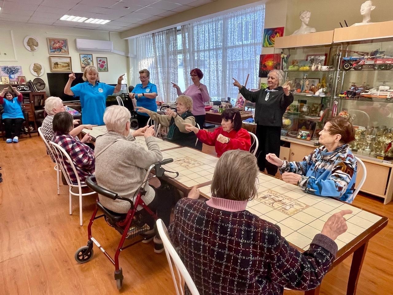 Сегодня в наш Геронтологический центр снова приехали наши добрые друзья — Волонтерский центр «Серебряный возраст». Встреча, как всегда, прошла по-домашнему душевно. Мы знаем, что для активного долголетия важны не просто занятия, а их регулярность. Именно поэтому дружба с «серебряными» волонтерами для нас ценна — они дарят общение на постоянной основе, а это лучшая зарядка для ума и хорошего настроения. В этот раз всё началось с энергичной разминки: проснулись мышцы, выпрямились спинки. А чтобы разбудить мысли и весеннее настроение, волонтеры провели увлекательную викторину о весне. Но самое интересное ждало впереди: из самых простых материалов участники создавали красивые цветочные композиции на бумаге. Сколько же радости в творчестве! А еще гости приготовили для наших жителей сладкие подарки и трогательные сувениры ручной работы — маленькие сердечки Знаете, такие минуты бесценны. В этот момент в глазах наших жителей зажигались искорки, а на лицах расцветали улыбки. Огромное спасибо команде «Серебряного возраста»! Спасибо за ваши сердца, за ваше тепло и заботу. Вы делаете мир добрее!