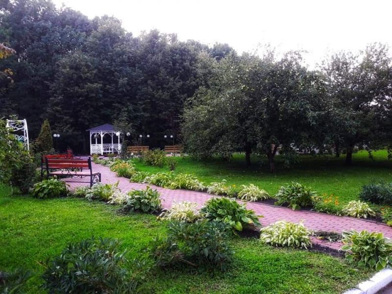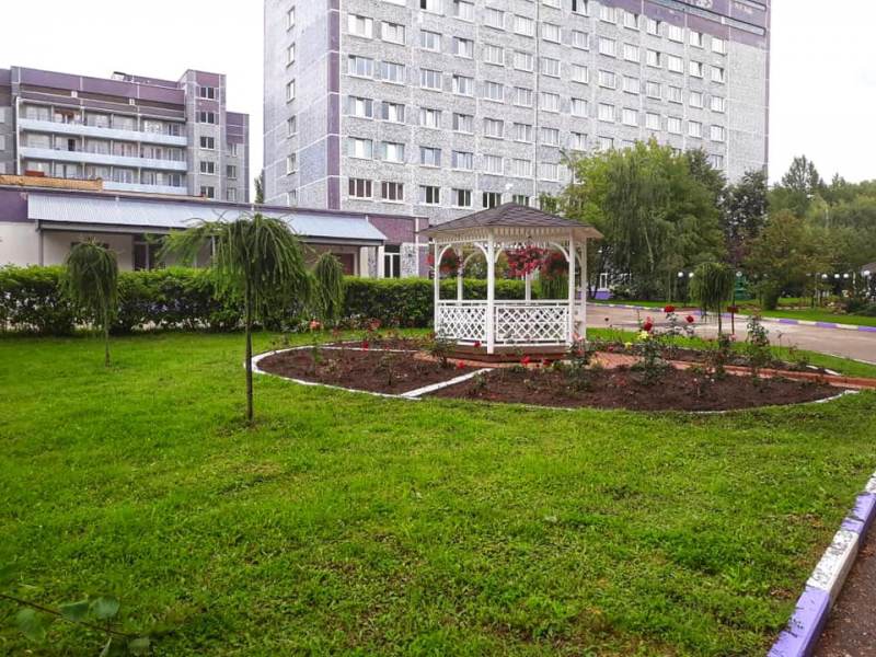 На благоустроенной территории разбиты цветники, посажены деревья, кустарники, имеются уютные беседки, лавочки, фонтан. Посажена аллея Ветеранов. В год 60-летия Победы на территории был открыт обелиск в память об участниках Великой Отечественной войны.